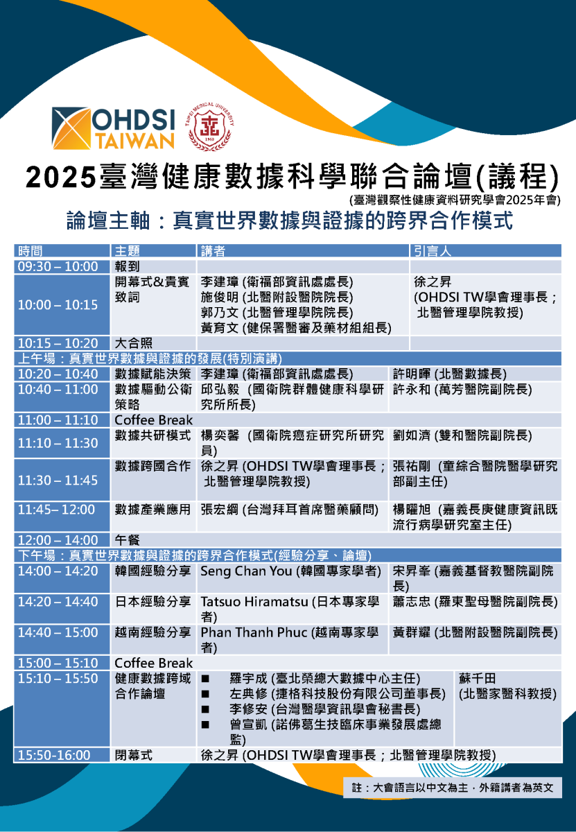 2025臺灣健康數據科學聯合論壇