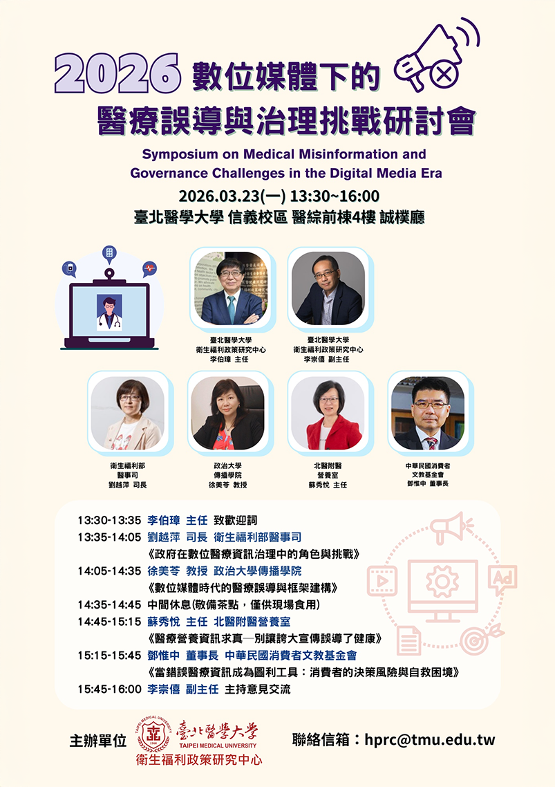 #臺北醫學大學 #衛生福利政策研究中心 #研討會