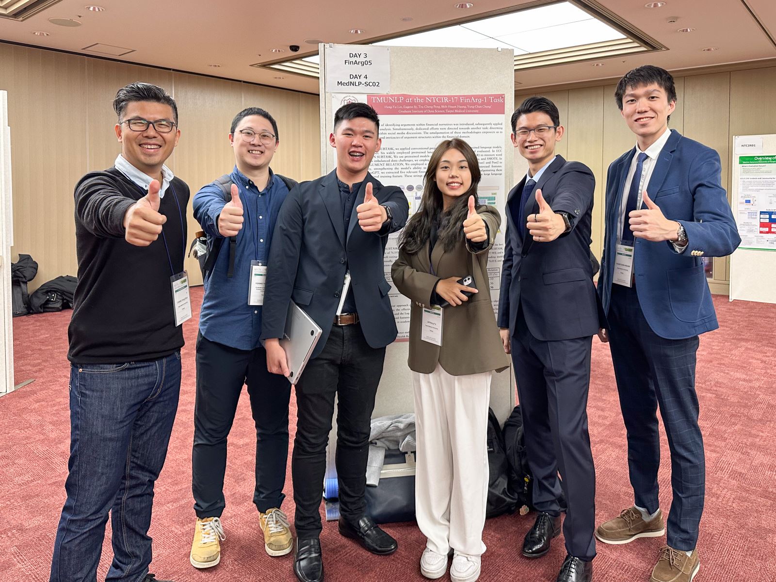 北醫大參賽團隊由大數據科技及管理研究所碩二生施辰穎、林亨優、彭子承、黃士軒及黃永鎮五人組成,在張詠淳教授帶領下,經過層層關卡競賽,分別獲得「論證單元分類任務(Argument Unit Classification Task)」第一名以及「論證關係檢測與分類任務(Argument Relation Detection and Classification Task)」第三名的殊榮,最終赴海外進行口頭報告,參展論文《TMUNLP at the NTCIR-17 FinArg-1 Task》以社群媒體和法說會記錄的資料集為基礎,成功處理了金融領域中論證單元識別和論證關係識別的任務,更一舉拿下最佳簡報獎(Best Presentation Award),表現相當亮眼。