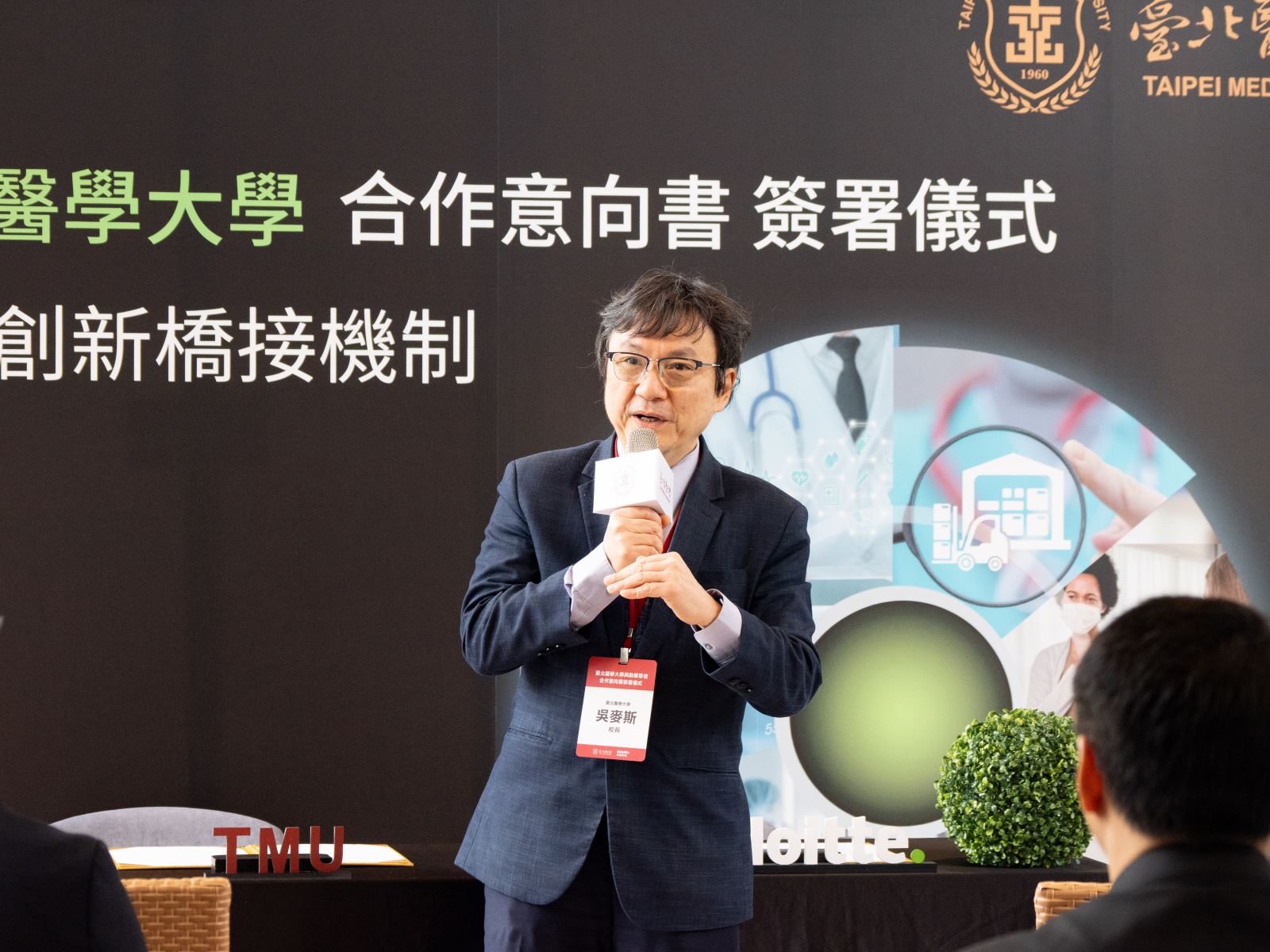 臺北醫學大學校長吳麥斯表示,北醫持續以臨床需求為核心,支持新創在關鍵成長階段獲得貼近實務的協助,讓研究成果更順利走向產業應用。透過制定《新創產品導入附屬機構辦法》,北醫於附屬醫院體系內建構制度化的「臨床商業驗證沙盒」,提供新創團隊進行產品導入、臨床應用測試與實務回饋的專業場域,協助創新技術在真實醫療環境中完成驗證,並以附屬醫院作為初期示範點,提升產品的臨床可信度與後續市場採用潛力。
