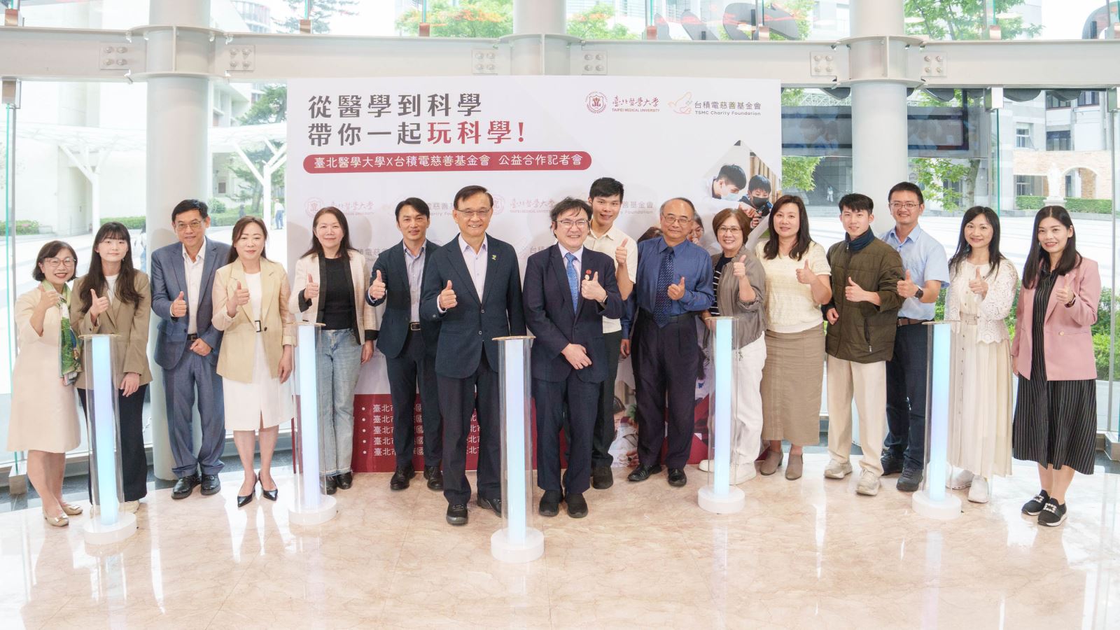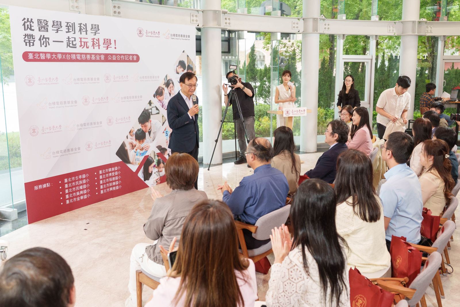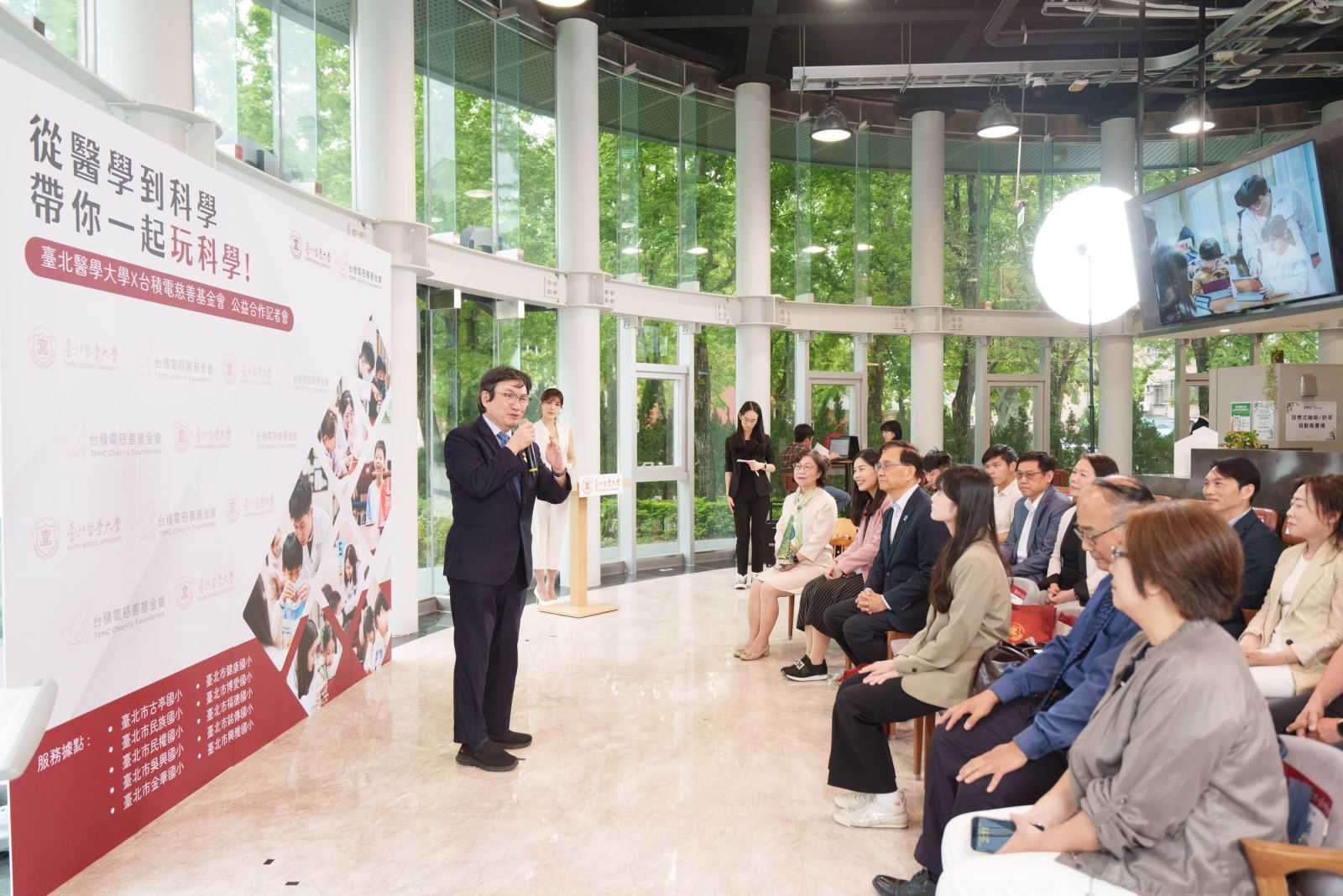 臺北醫學大學與台積電慈善基金會今(26)日共同舉辦公益合作記者會,宣布攜手走入10所臺北市國小校園,透過寓教於樂的課程設計,帶領學童認識醫學與科學。此次更首度將將「醫師的超級幫手──達文西機械手臂」帶進國小校園,讓孩子近距離接觸先進醫療科技,從互動體驗建立基礎認識。