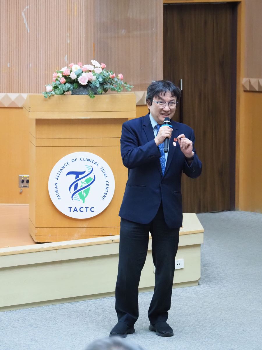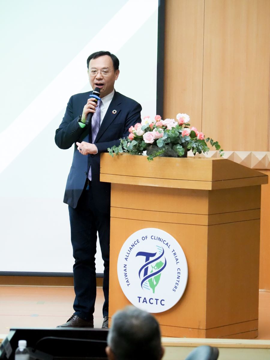 圖說:臺灣臨床試驗中心聯盟(TACTC)第一屆第一次會員大會中,由吳麥斯理事長於會中致詞,宣示推動跨機構整合、強化臨床試驗量能,帶領臺灣臨床試驗邁向國家隊新階段。